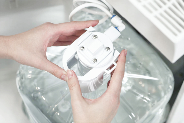 ウォーターサーバーの差込口に合わせて、垂直にセットしてください。
